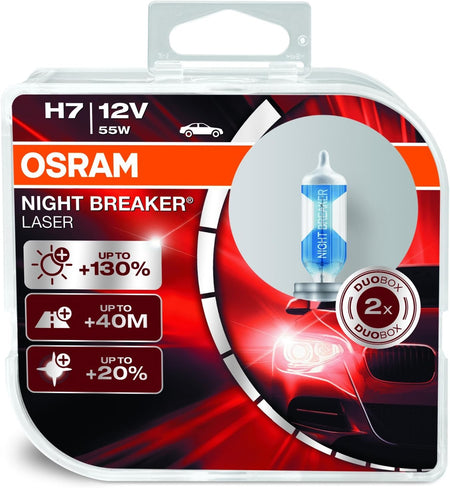 Gracias a la innovadora tecnología de ablación láser, las lámparas halógenas NIGHT BREAKER LASER brillan hasta un 150% más en comparación con la norma legal mínima. El filamento de alta ingeniería asegura un impulso de luz adicional. En consecuencia, las lámparas proporcionan un haz de luz largo de hasta 150 m y una luz hasta un 20% más blanca en comparación con la norma legal mínima. Más luz y mejor visibilidad pueden ayudar a los conductores a identificar y reaccionar más rápidamente ante los peligros del tráfico.